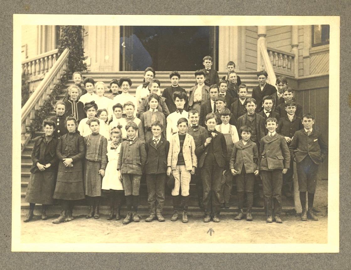 Monterey Grammar School - Myron Oliver front row with flower circa 1900