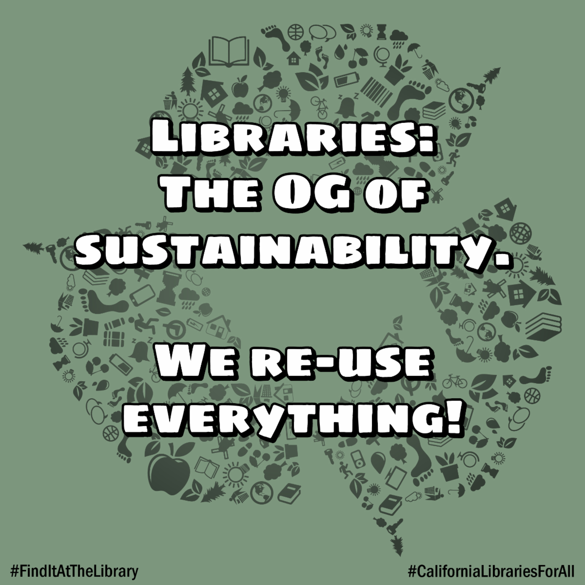We re-use everything! #FindItAtTheLibrary #CaliforniaLibrariesForAll”