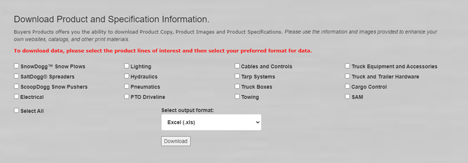 - Check the boxes for each category you'd like to download, choose the output format you'd prefer, and click "Download"