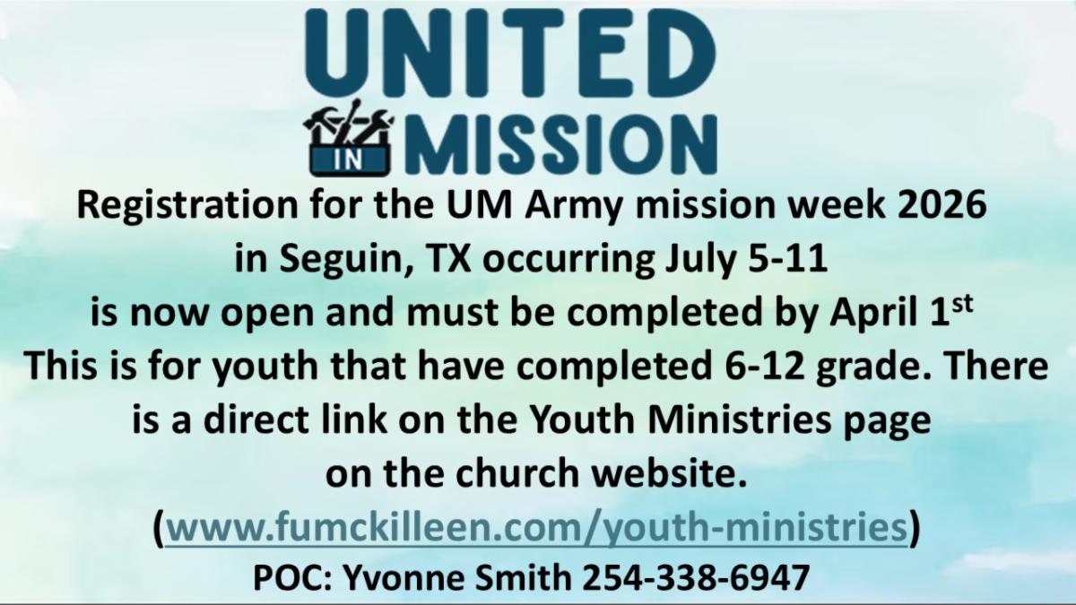 Below is a list of highlighted events for the upcoming week. Items in italics indicate off-site events. Click on the link above to view the full church calendar.