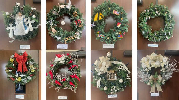 Thank you to each of the small groups that participated in the wreath decorations. You did a fabulous job. Many thanks go to Marty Portmann, who coordinates this event annually.