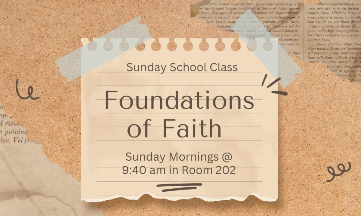 Missing your regular Sunday School this summer? Ready to try Sunday School for the first time? A new class has started in room 202 called Foundations.