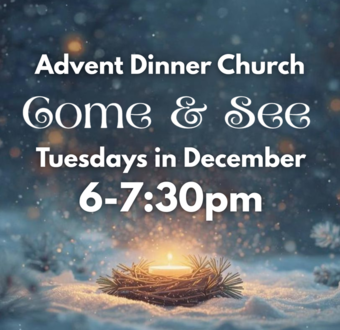 “Come & See” what this Advent season is all about. This family-friendly gathering starts at 6:00 pm with supper and then worship in song and small group conversation. After supper the kids can go and have their own fun; youth can stay and have their own