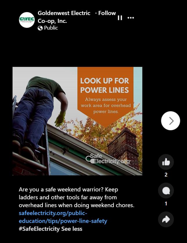 Look Up For Power Lines social media mp4 graphic, Goldenwest Electric Co-op, Inc., Mont.