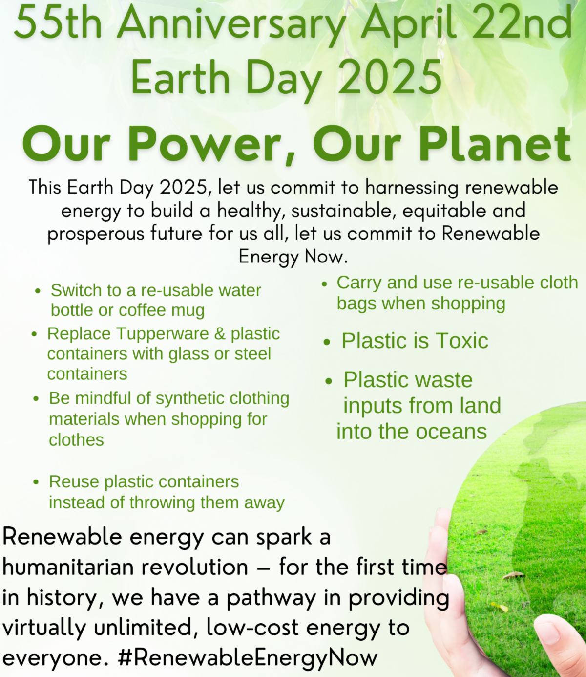 Earth Day April 22nd - Our Power, Our Planet