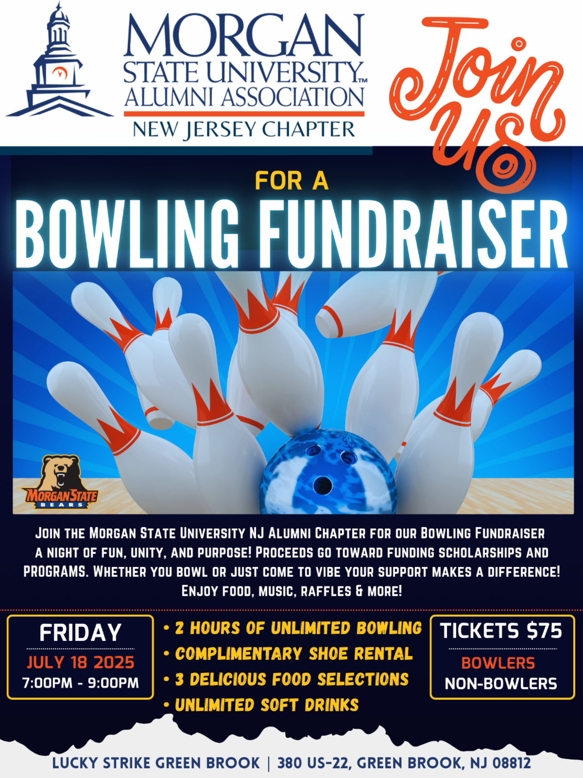 Come out for an exciting night of strikes, spares, and school spirit all in support of Morgan State University NJ Alumni Chapter! Whether you're a bowling pro, just in it for the fun, or a spectator we’d love to see you there.