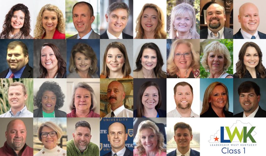 1st Row (L to R): Martha Argotte, United Southern Bank; Crystal Balentine, FNB Bank; Kenny Boyd, Baptist Health Paducah; Terry Bradley, Paducah Bank; D’Anna Browning, City of Marion; Betsy Burkeen, United Way of Western Kentucky. 2nd Row: Jay Campbell, Fredonia Valley Bank; Tyler Coleman, Farmers Trust Bank; Nate Cox, KeyBank/City of Mayfield; Sarah Dallas, Paducah Bank; Tonya Driver, Crittenden Co. Board of Education; Sarah Drysdale, UK Cooperative Extension. 3rd Row: Kevyn Dunker, GEO Consultants; April Gallimore, Fulton Co. Judge Executive’s Office; Leslie Heath, Keller Williams Realty; Dana Howard, CFSB, Justin Jackson, Jackson Consulting Firm; Ruth Lynch, Retired, Christian Co. Bd of Education. 4th Row: Susan Malone, Citizens Bank; Jeremy Martin, All Hands Consulting; Stephanie Moss, Child Watch; Joe Pelletier, Rogers Group; Jennifer Quillen, Graceland Management Services; Josh Ryan, Planters Bank. 5th Row: Scott Sholar, Tennessee Valley Authority; DeeAnna Sova, Hopkinsville/Christian Co. Public Library; Ryan Tolbert, Atmos Energy; Shawn Touney, Murray State University; Monica Walker, Holiday Hills Resort/Lake Barkley Chamber; Austin Wetherington, Cong. James Comer’s Office. | |