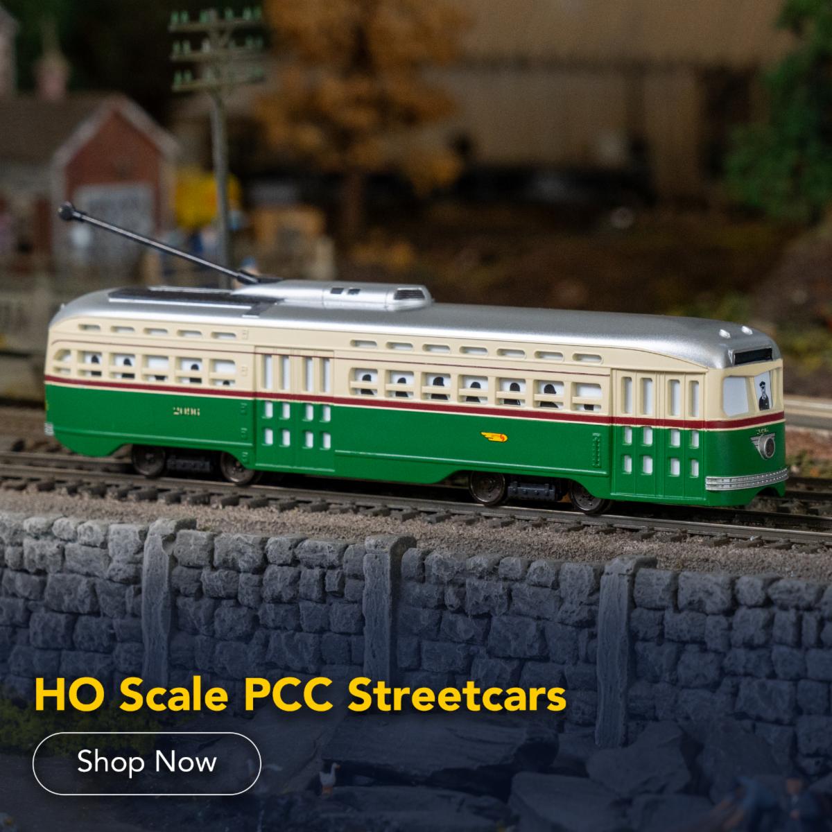 The Presidents' Conference Committee (PCC) streetcar was designed in the 1930s as a quiet, faster, and more streamlined alternative to other streetcars available at the time. They proved to be reiliant and long-lasting, as many are still in regular service to this day. The PCC streetcar remains a beloved and iconic design in American urban transit. The Bachmann PCC Streetcar has been improved to sit lower, as per the prototype, and includes new enhanced details on wheels and truck brakes. It includes a factory-installed 21-pin socket for DCC decoder installation of your choice. |
