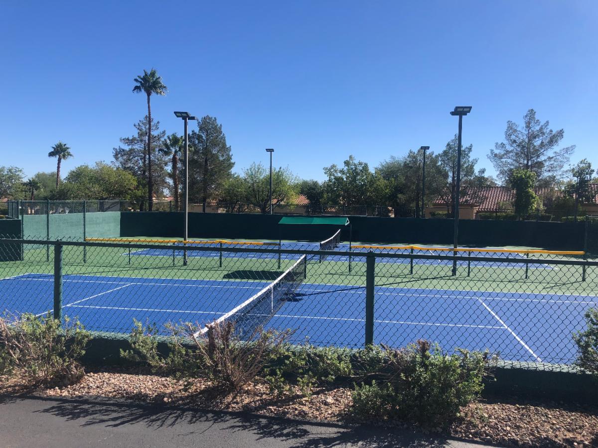 The replacement of the light fixtures at the Mountain Shadows Tennis Courts will begin on Monday, August 4, 2025, and is scheduled to be completed on Monday, September 15th. During this time, the Mountain Shadows Tennis Courts, Walking Path, Shuffleboard court area, and Horseshoe Pit area will be CLOSED. Tennis Courts at Desert Vista and Pinnacle will be Open. Walking Track at Pinnacle (around the Softball Field) will be open.