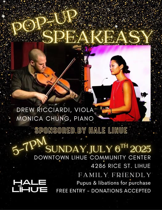 "Ok. We are in crazy times and things are escalating. Love fully. Live your life. Be good to one another. Drew Ricciardi and I would love to spread love and aloha through music. Join us for the first Sunday in July. It’s a free event where we will play our hearts out. Love to all." Monica Chung