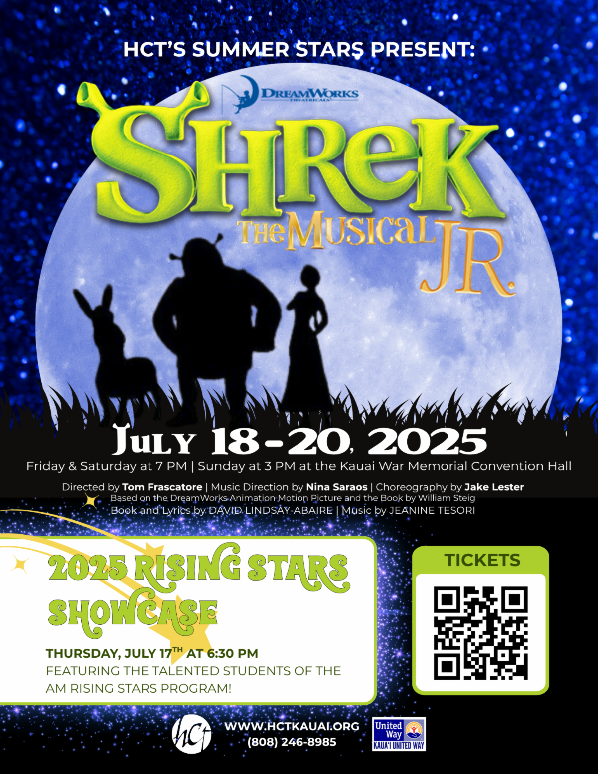- Prepare to be dazzled by the rising talents of our Summer Stars Rising Stars program, aged 5 to 15. This one-night-only event is a celebration of their dedication and hard work, featuring an array of fun keiki inspired performances that will leave you inspired by Kaua'i's youth.