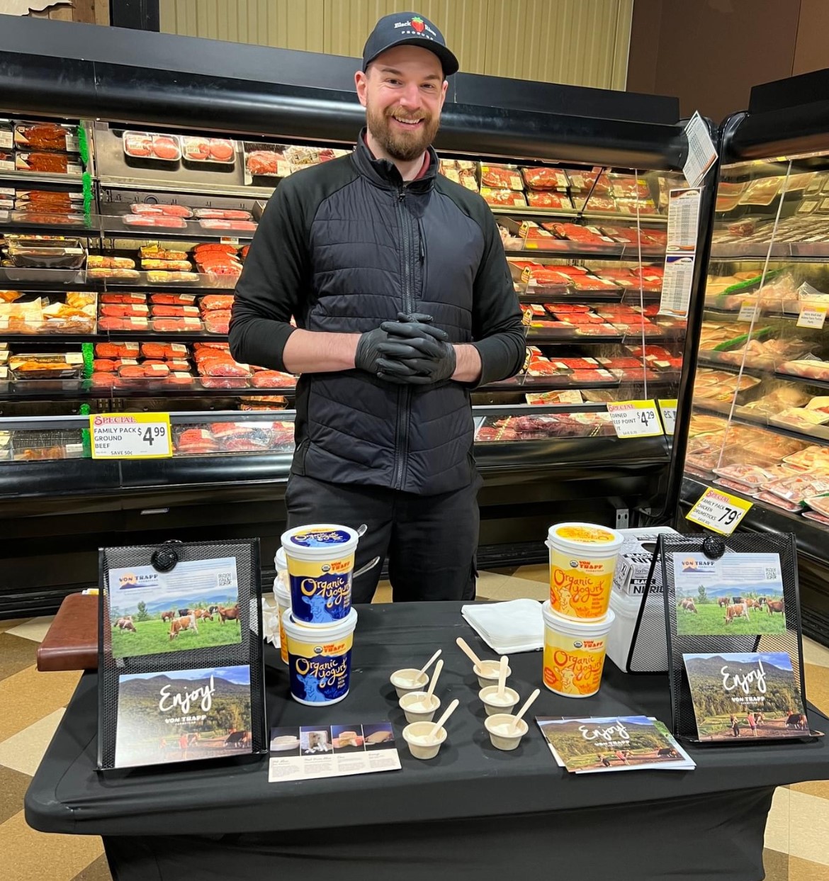 Black River Produce is reinstituting a vibrant on-site demo program. The sales rep help engage store buyers & shoppers to promote the products they sell. They tell the story of the business, get direct feedback, & always do so with the intent to help the store engage with shoppers, without having the labor outlay. At Middlebury Coop & Jericho Market, BRP meets staff & customers to build relationships that encourage sales.