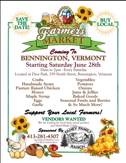 Fahey Family Ranch in Pownal is sponsoring the Farmers Market of Bennington. This farm is about building community, from summer riding camps to supporting Veterans with community engagement. They saw a need to re-engage as changes to the prior farmers market came about.