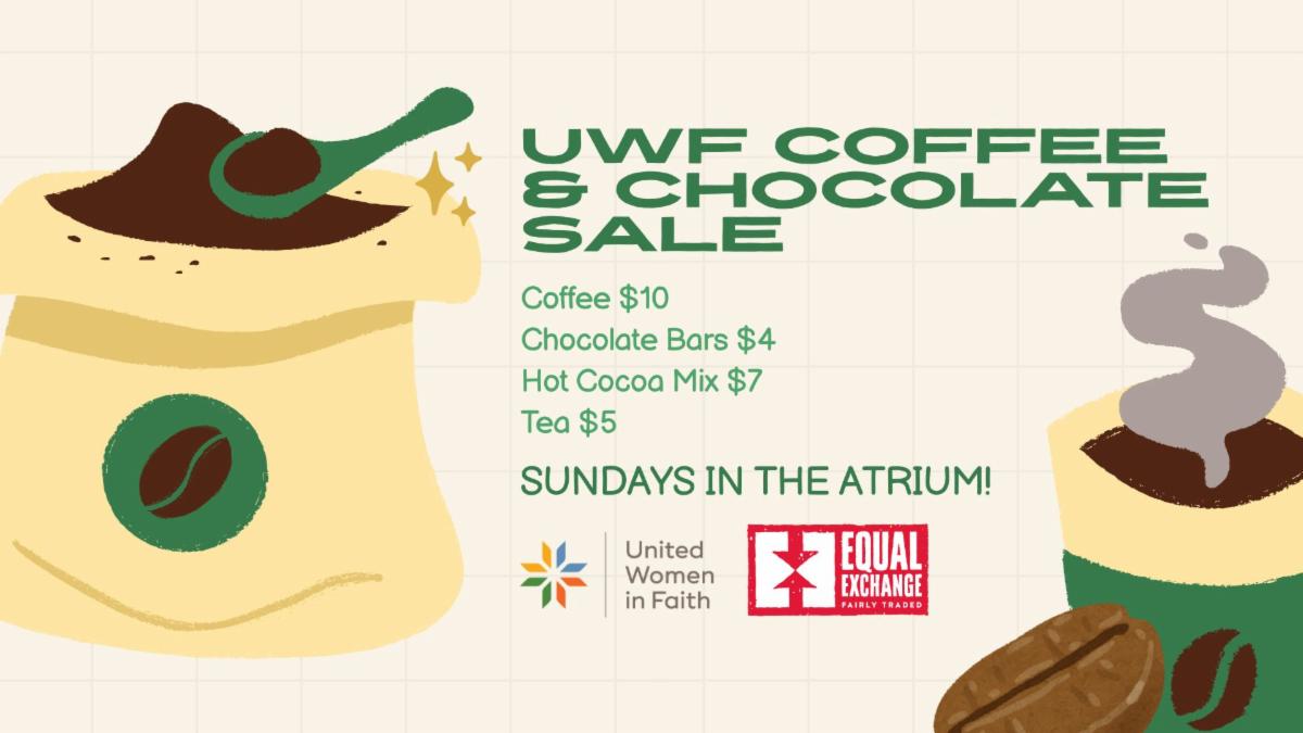The United Women in Faith will be selling Equal Exchange products on Sundays in the Atrium. They will have Coffee, Chocolate Bars, Hot Cocoa Mix, & Tea. Help support small farmers & local agencies providing help & healing! Selling on November 23 & December 7.