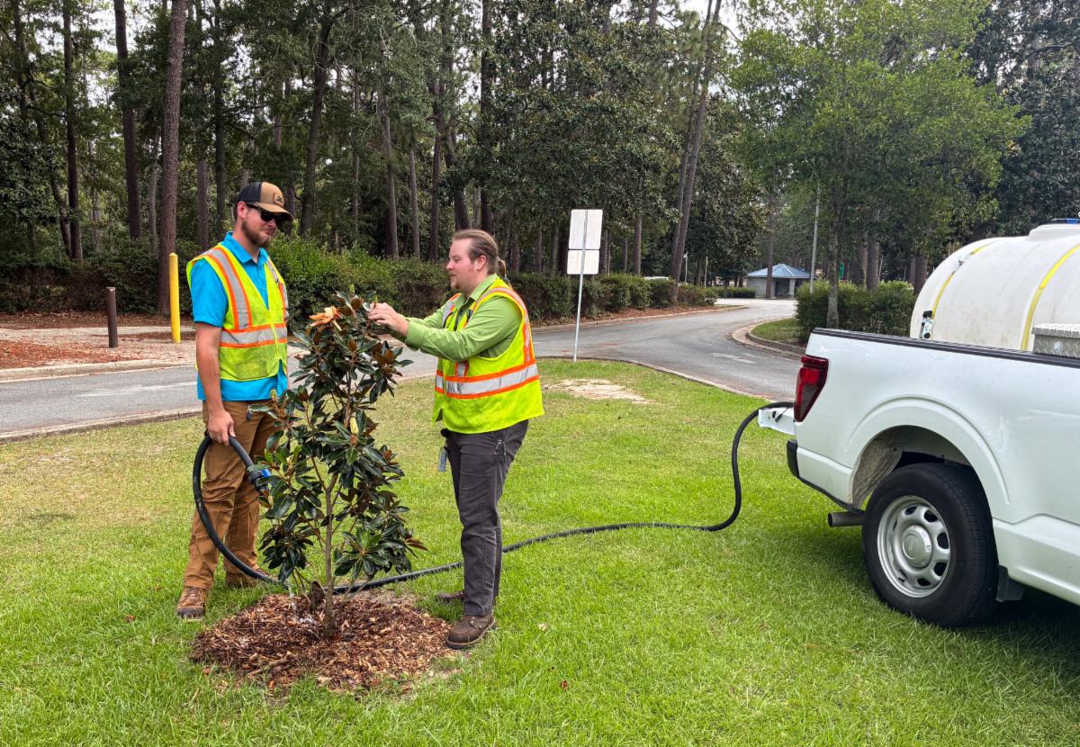 The plantings and the Urban Forestry Department are funded through a Trees Across Georgia (TAG) grant, applied for by the Tifton Tree Board, headed by Dr. George Vellidis. Nicholson and Mahoney water the trees consistently throughout the park and the city.