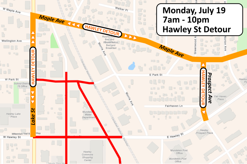 To make way for the THRILLING Mundelein Grand Prix-Intelligentsia Cup Bike Race, several downtown streets will be closed from 7 a.m. to 10 p.m. Absolutely no vehicles will be permitted on the closed roads during this time. Impacted streets include Hawley Street, Seymour Avenue, Park Street, Chicago Avenue, Hammond Street, and Plaza Circle. PLEASE NOTE: Hawley Street traffic will be detoured to Lake Street - Maple Avenue - Prospect Avenue. Always obey posted road closure signs and utilize detour routes where possible.