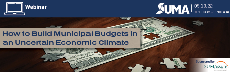 Tomorrow from 10:00 - 11:00 a.m., join SUMA for the webinar How to Build Municipal Budgets in an Uncertain Economic Climate. In this webinar, Ashley Stradeski, Director of Finance for the City of Yorkton, Corinne Bomben, Chief Financial Officer for the City of Prince Rupert, and Jeff Fielding, former City Manager for the City of Calgary, will discuss current risks associated with municipal budgets and capital investments, offer strategies to mitigate these risks, and share insights on how to approach budgeting challenges.