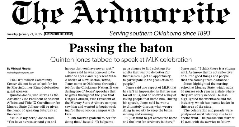 Quinton Jones, Murray State's Assistant Vice President of Student Affairs, was chosen by the HFV Wilson Community Center as the guest speaker at their Martin Luther King Celebration on Saturday, January 25th in Ardmore.