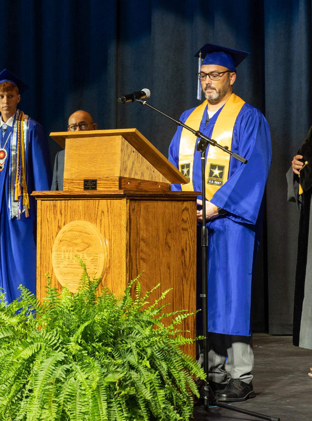 Retired Army Sergeant First Class Kevin Siders led the Pledge of Allegiance. He graduated with his gunsmithing degree.