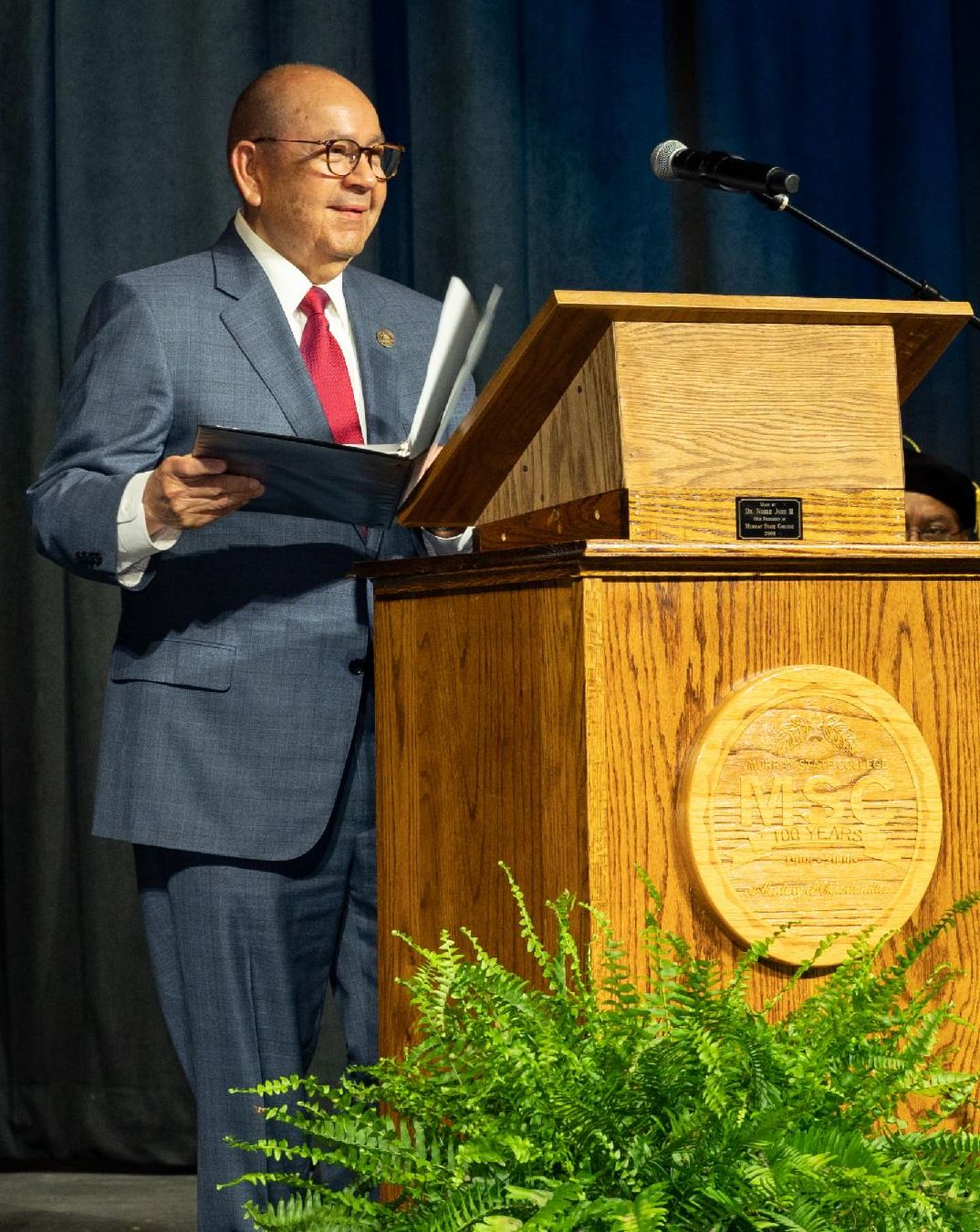 After his inspiring address, we presented him with a gift to announce and commemorate that Ittapila' Scholarship at Murray State. Ittapila' means partnership in Chickasaw.