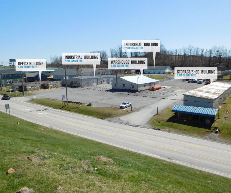 - 19.050 (+/-) total square feet across five buildings (Industrial/shop/storage/office)