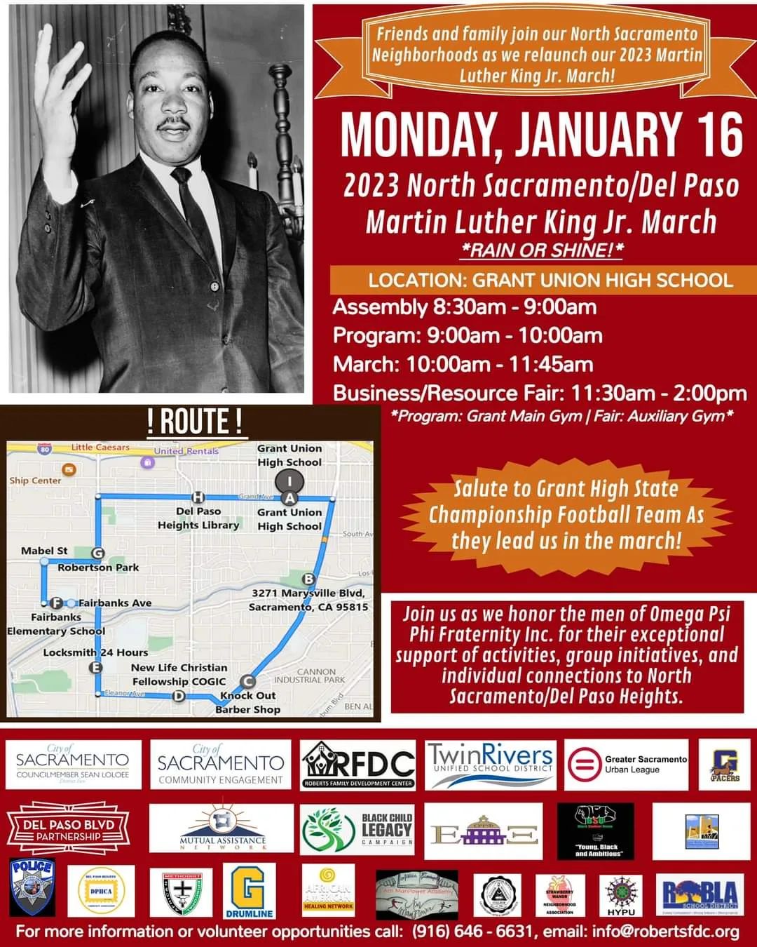 Rain or shine, join North Sacramento's Martin Luther King Jr. March on Monday, January 16, 2023!