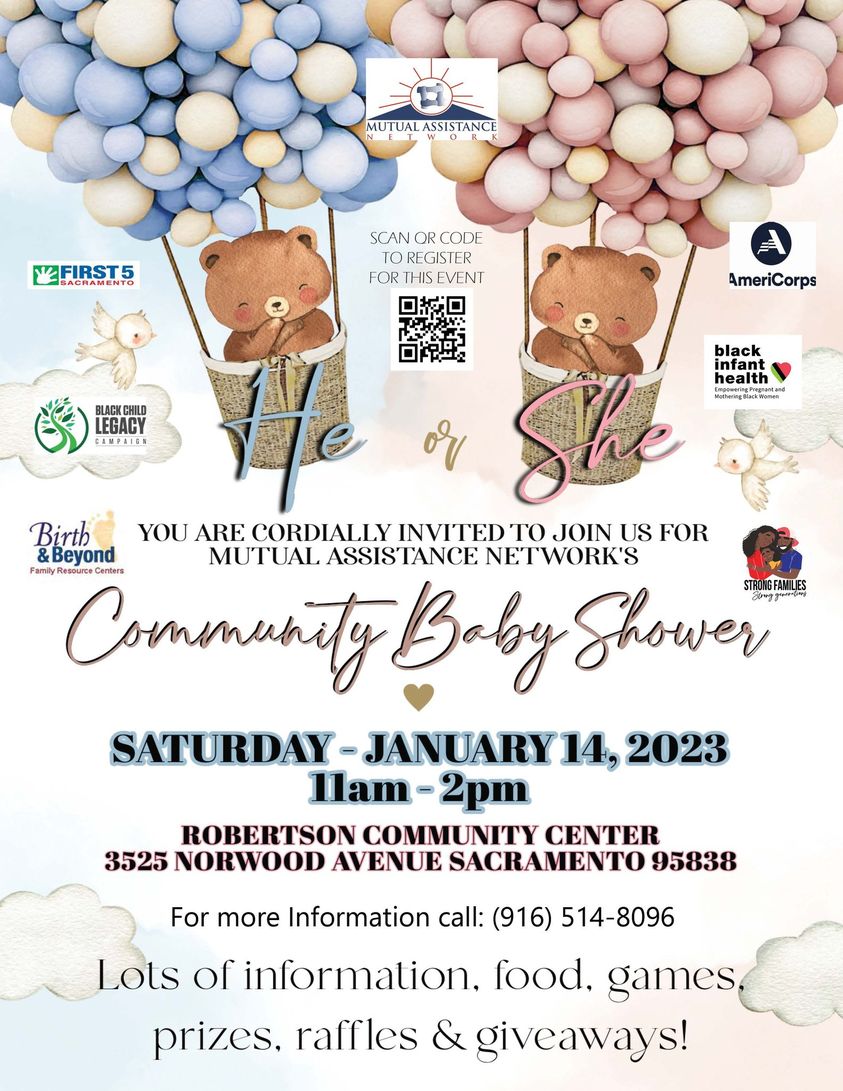 Join us for a community baby shower on Saturday, January 14, 2023, at Robertson Community Center! With lots of fun games, prizes and raffles, you don't want to miss out. Be sure to register!