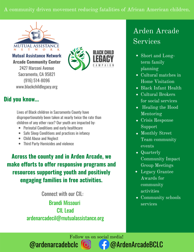 For more information, call Arcade Community Center: 916-514-8096