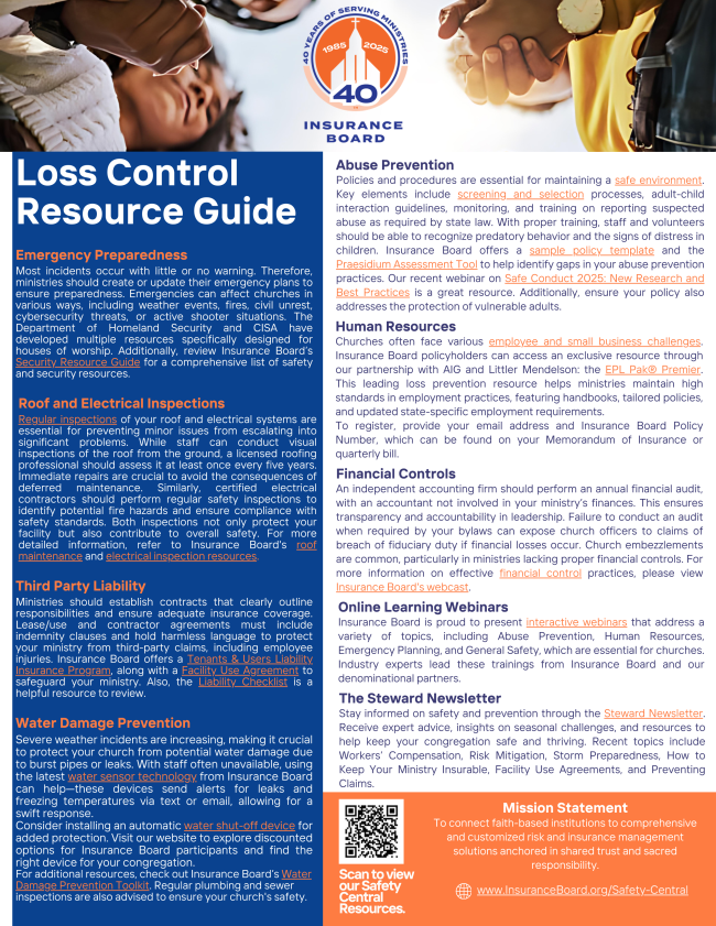 We have also collected additional preparation and educational resources for church leaders. Here is our previously recorded Leadership Lunch on Church Safety and Vandalism, as well as an Emergency Operations Template from our Disaster Ministries Coordinator and Best Practices for local church security from the National Ministries Setting of the UCC. Associate Conference Minister Lawrence Richardson has also compiled these Resources for churches considering armed security.