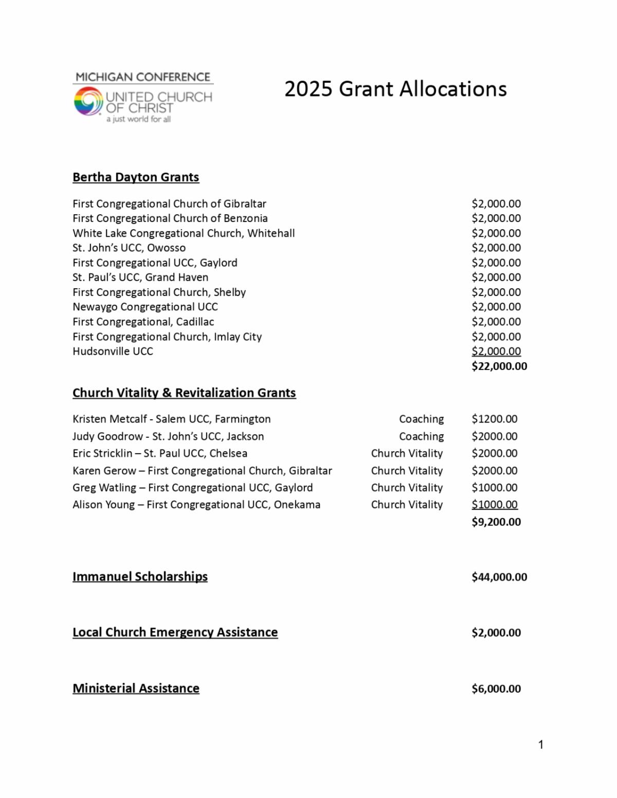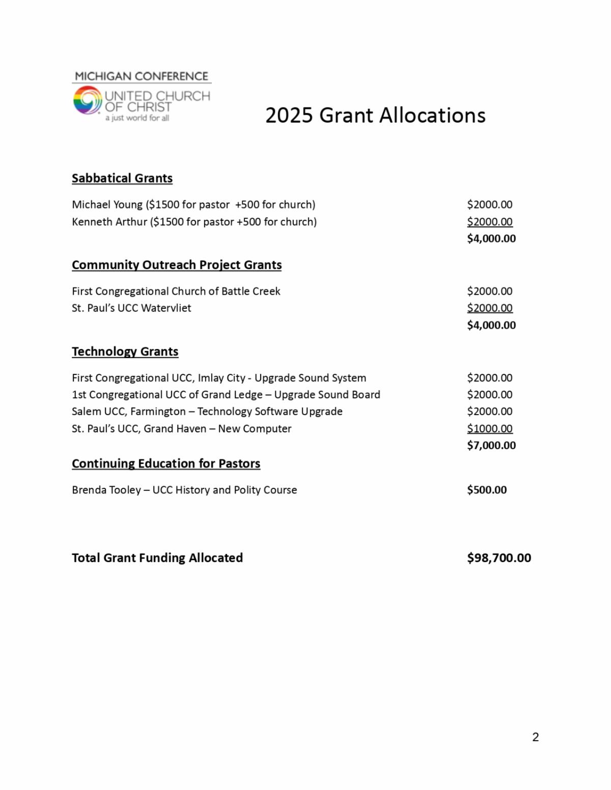 In reporting for the Annual Meeting, the total amount of grants allocated to local churches and clergy in 2025 from the Michigan Conference was $98,700.00.