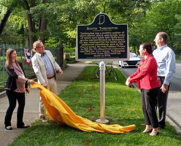 On August 5, a small group of historic preservationists gathered outdoors at 4270 N. Meridian St. to witness the unveiling of a new state historical marker. The marker honors two-time Pulitzer Prize-winning author Booth Tarkington, who live in the home from 1923 until his death in 1946. A prolific author of short stories, plays, and novels, some of his works were made into popular Hollywood movies and performed on Broadway.