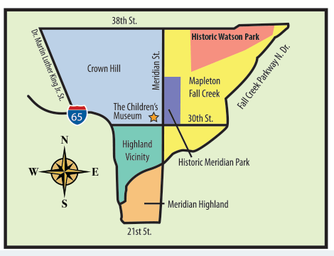 The Children's Museum of Indianapolis demonstrates its commitment to the six adjacent Midtown neighborhoods with different programs. The Neighborhood Club offers free Children's Museum memberships to residents from six neighborhoods in the map. Download the application.