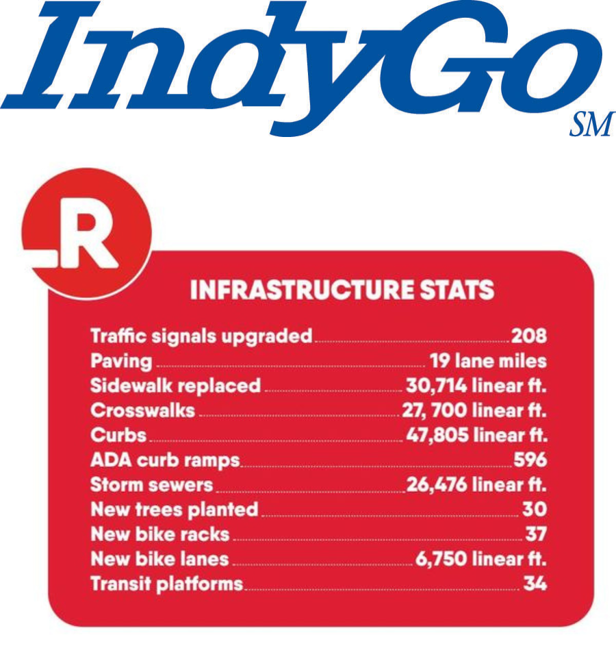 IndyGo is improving travel options throughout the city—not just for those who ride the bus. Infrastructure improvements along the Red Line include 19 newly paved lane miles, 30,700+ feet of replaced sidewalks, and 27,700 feet of crosswalks.