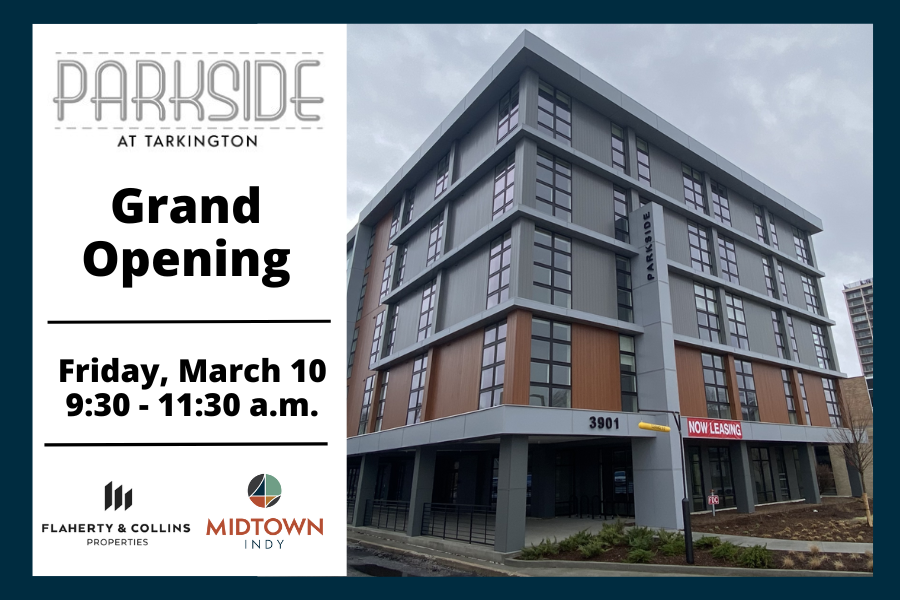 Join us in celebrating the grand opening of Parkside at Tarkington on Friday, March 10 from 9:30 - 11:30 a.m. The new affordable housing development, located at 3901 N. Meridian Street, is a joint initiative of Midtown Indy and Flaherty & Collins Properties.