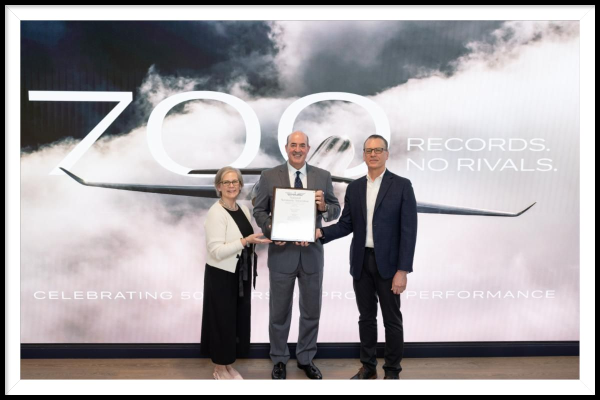 On April 26th, the National Aeronautic Association joined Gulfstream in New York to celebrate its 700th city-pair speed record, a Gulfstream G700 flight from Taipei to Miami. This flight also commemorated the 50th anniversary of Gulfstream’s first U.S. National Aeronautic Association (NAA) accredited speed record, set in 1975 by the Gulfstream GII.