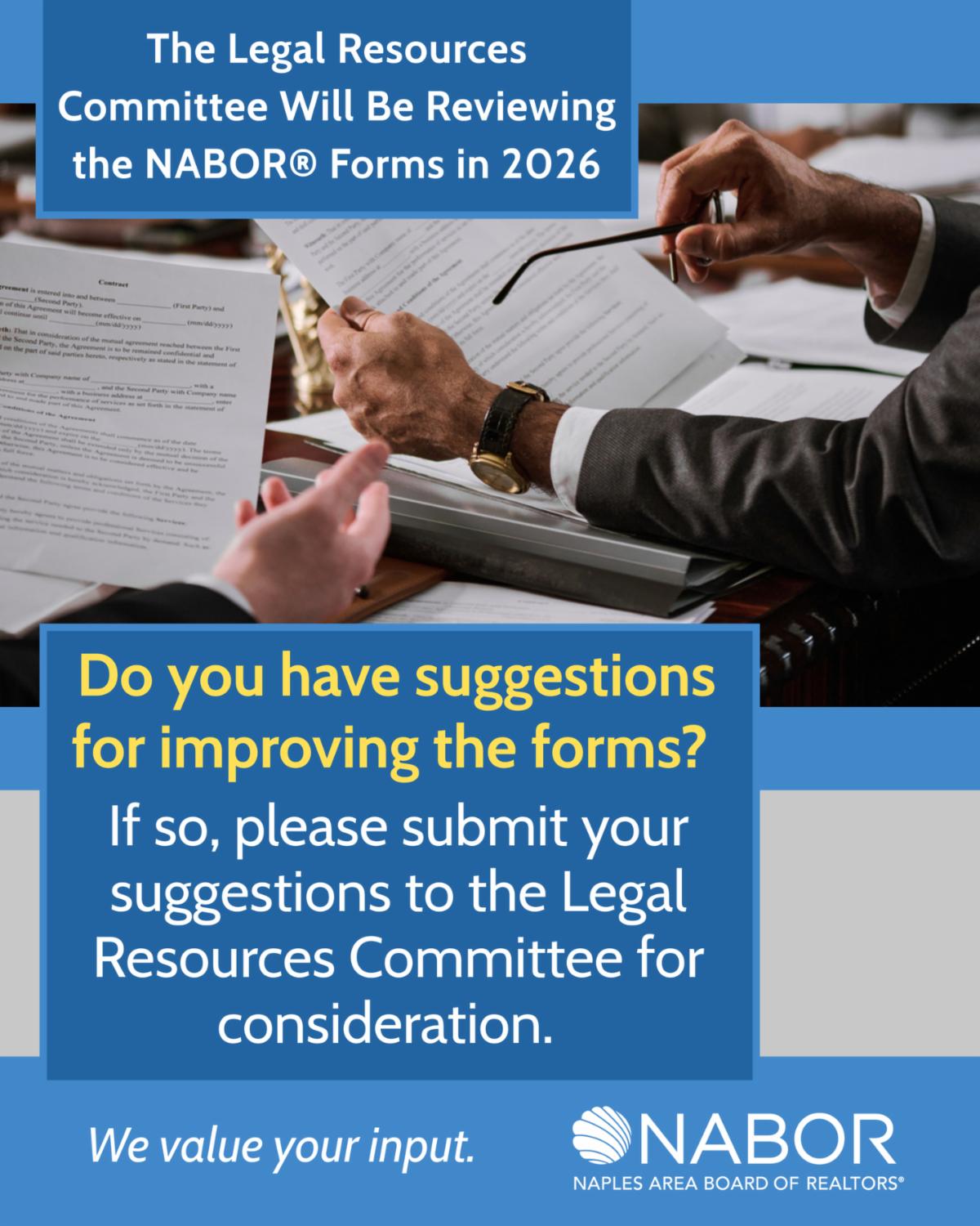The NABOR® Sales Contract is arguably the oldest continuously utilized form of sales contract used in Florida. In fact, the NABOR® Sales Contract was first used approximately a decade before the first FR/BAR contract was. Every two years, a hardworking group of REALTORS® and attorneys gather in a room lined with mahogany wood shelves and many leather bound books to discuss, debate, argue, finesse and work through updates and refinements to the form contracts. That hard work and dedication has resulted in a balanced, well-reasoned set of contracts that have stood up to legal debate and review.