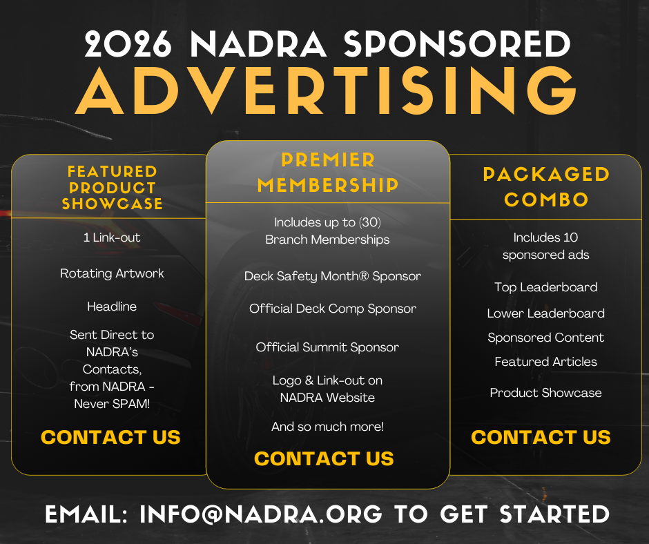 | | NADRA Decks Done Right Education® Program Update: Look for an upcoming class this April! | |