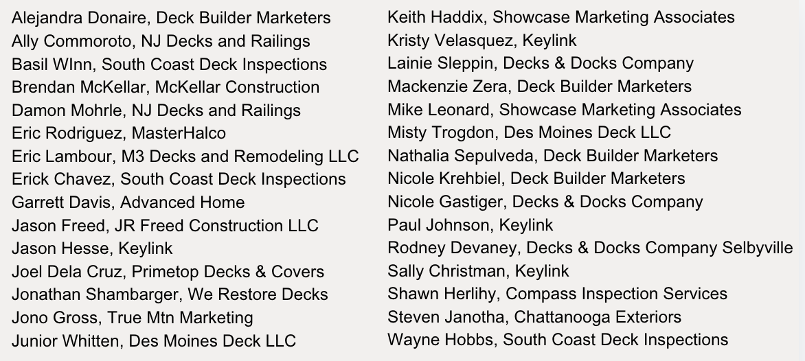 There is still time to get signed up to Exhibit at Deck Expo. Click HERE for more information. Find Registration and Hotel Information HERE