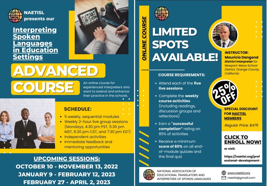 NAETISL Members receive 25% off on this five-week, language-neutral course (synchronous and asynchronous learning). Space is limited to allow for student interaction and mentorship opportunities. Click here to register and learn more.
