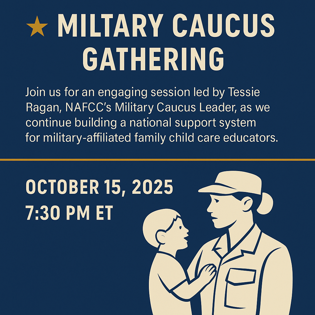 Join us for an engaging session led by Tessie Ragan, NAFCC’s Military Caucus Leader, as we continue building a national support system for military-affiliated family child care educators.