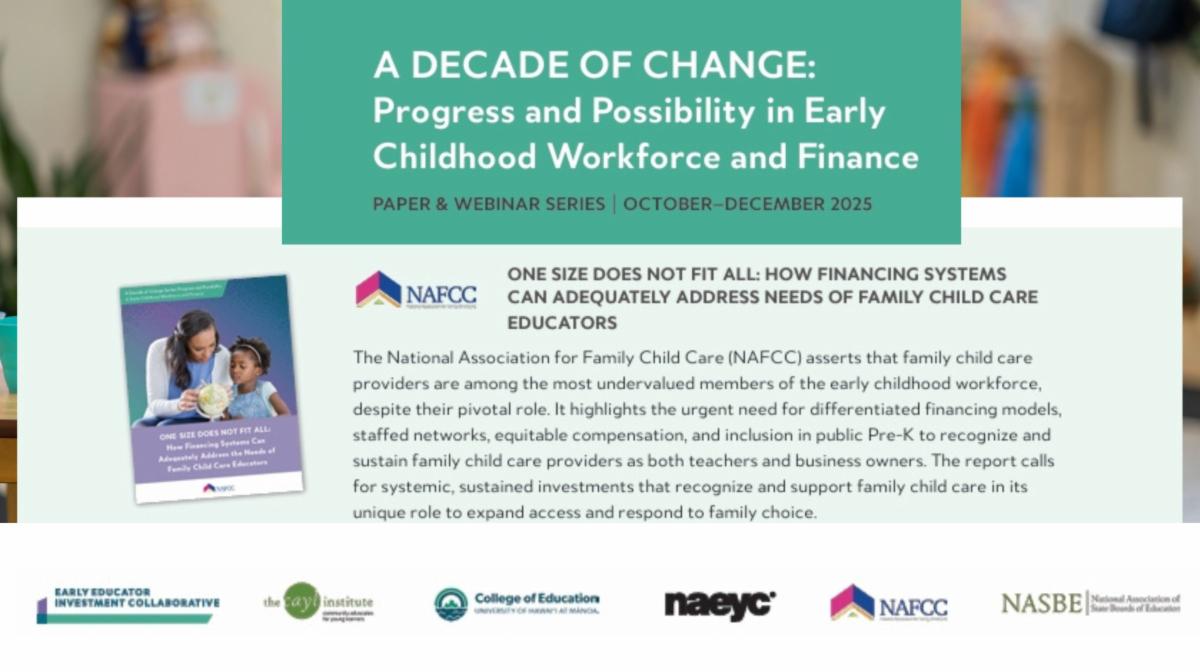 NAFCC se enorgullece de contribuir a A Decade of Change: Progress and Possibility in Early Childhood Workforce and Finance, una serie por el 10º aniversario del Early Educator Investment Collaborative.