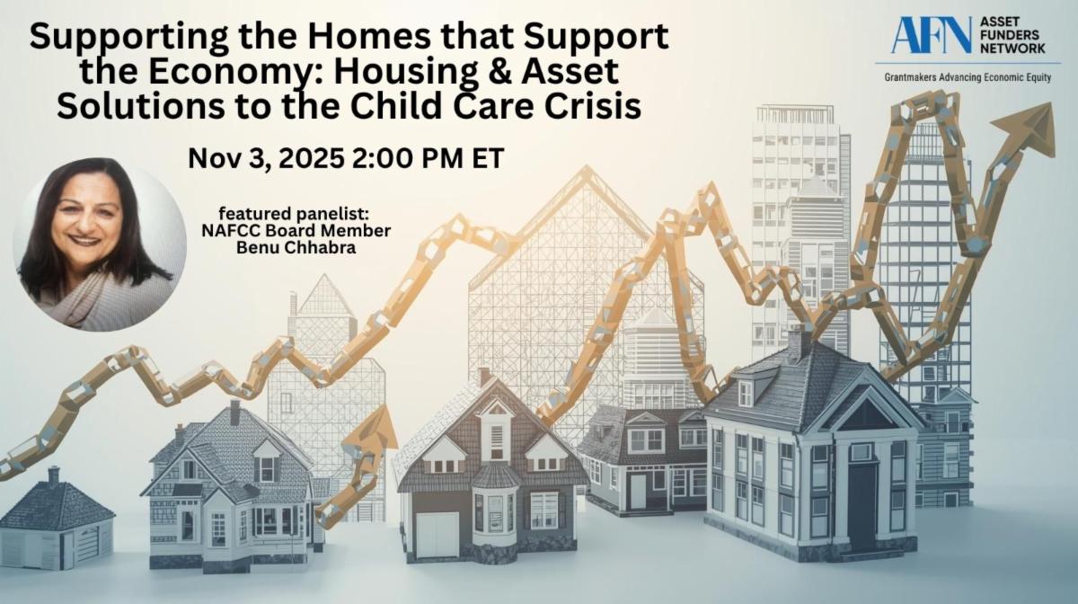 Únase a la miembro de la Junta de NAFCC, Benu Chhabra, el 3 de noviembre de 2 a 3 PM EST para un panel de discusión sobre soluciones de vivienda y activos frente a la crisis del cuidado infantil. Aprenda cómo los hogares estables y las comunidades solidarias son clave para fortalecer nuestra fuerza laboral en educación infantil y la economía.
