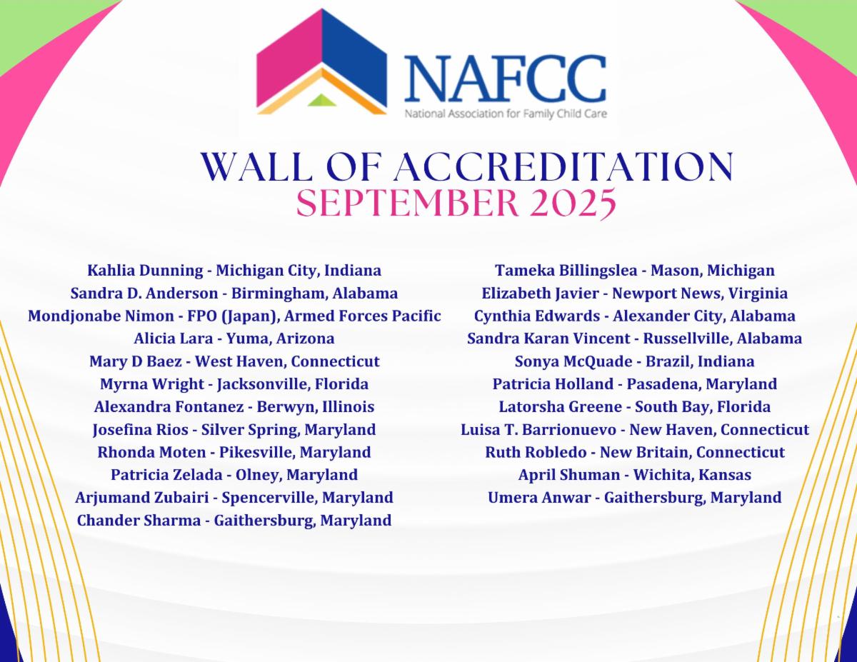 ¡NAFCC celebra con orgullo a los educadores que obtuvieron la Acreditación NAFCC en el mes de Agosto! Este importante logro resalta su compromiso con la excelencia y su pasión por brindar un cuidado excepcional a los niños y sus familias.