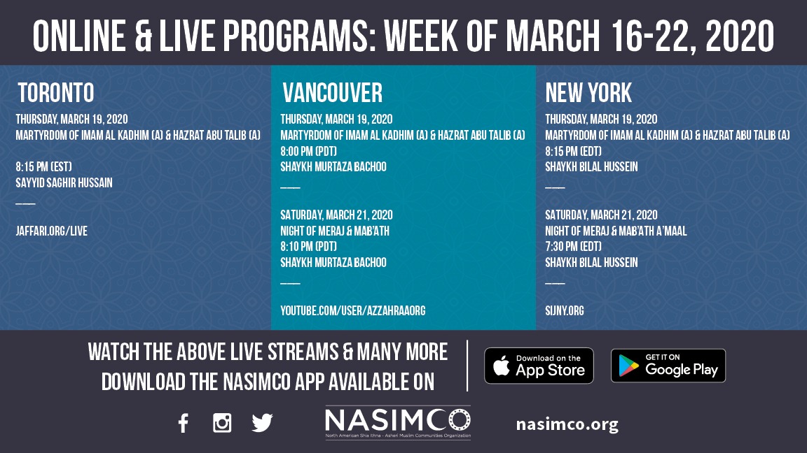 ONLINE LIVE STREAM LECTURES FROM OUR MEMBER JAMAATS IN NORTH AMERICA
