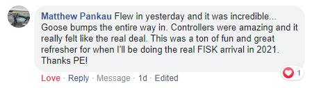 "I have always dreamed of flying the Fisk Approach to Oshkosh, but never thought it would be a reality. Now, because the sim was so much fun, I have it on the bucket list to do it for real. The controllers, graphics, NOTAM, and overall look and feel were just outstanding."