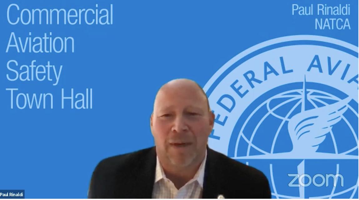 NATCA President Paul Rinaldi spoke as part of the Federal Aviation Administration’s (FAA) virtual Commercial Aviation Safety Town Hall on Tuesday, Feb. 23. Other panelists included FAA Administrator Steve Dickson, FAA Deputy Administrator Bradley Mims, Air Line Pilots Association, Int’l (ALPA) Aviation Safety Chair Capt. Steve Jangelis, and representatives from other labor and aviation groups.