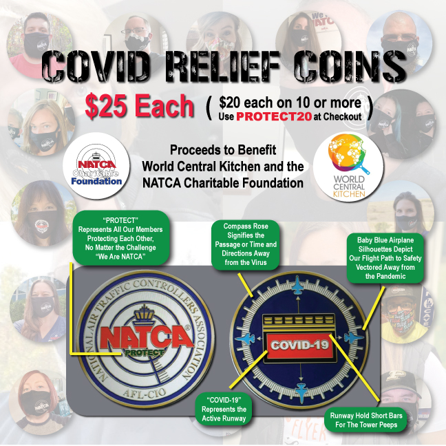 To help make a difference in the lives of others who were not able to keep their jobs or are struggling to meet their basic needs, proceeds from the purchase of this coin will benefit the NATCA Charitable Foundation and World Central Kitchen.