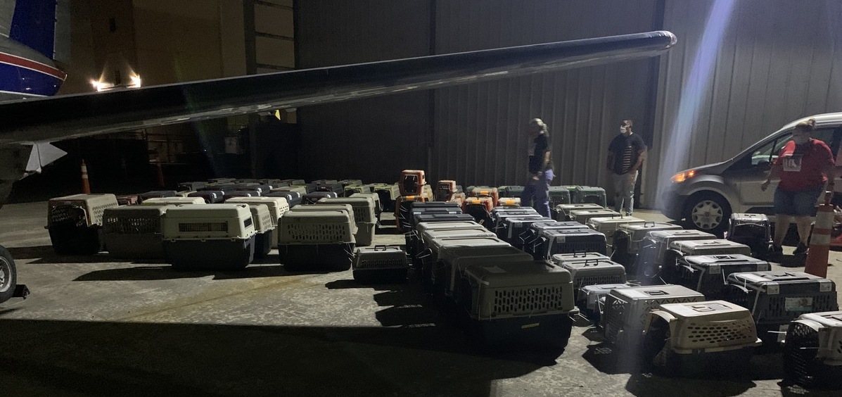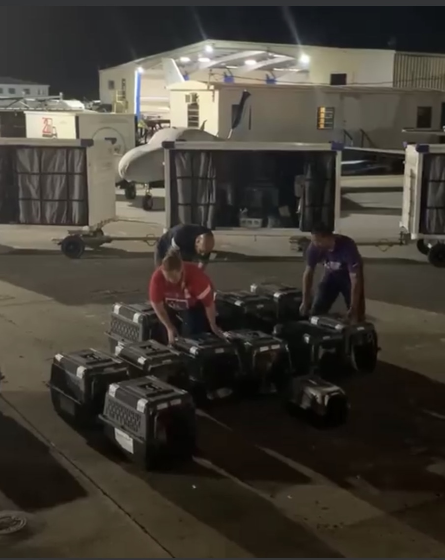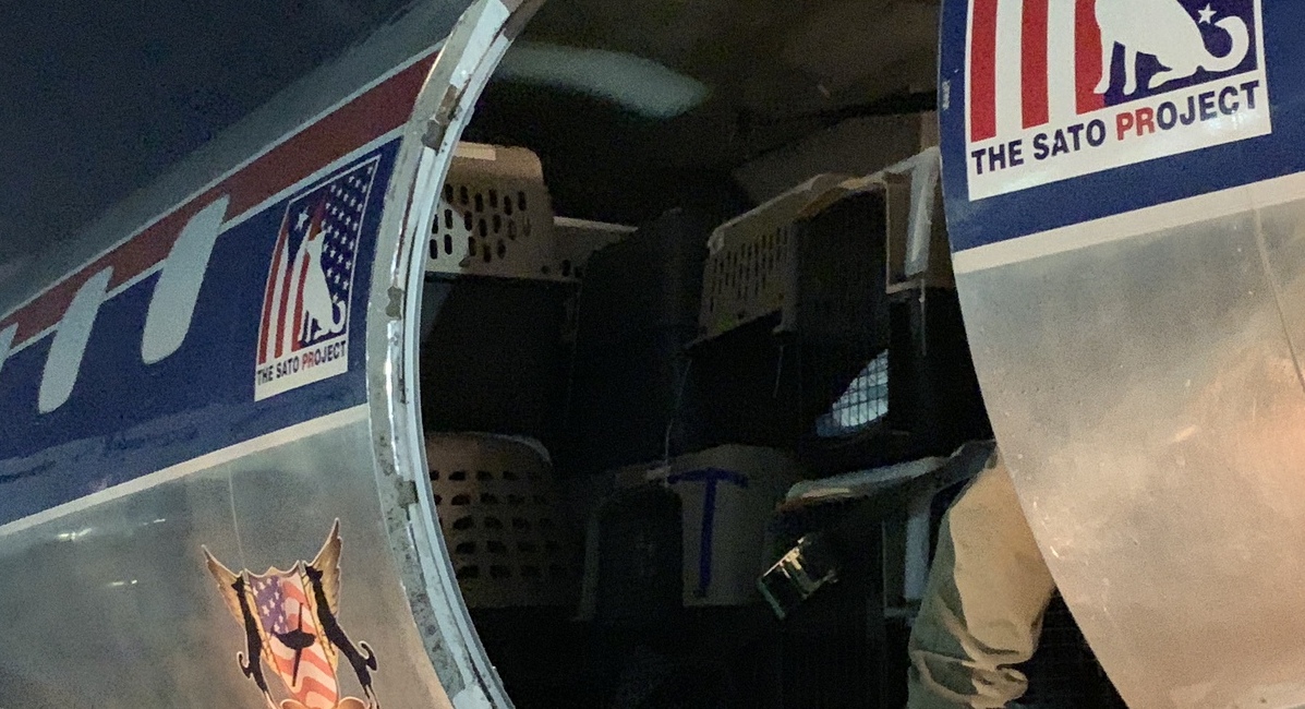 "Typically, we start around 11 p.m. by sorting and labeling all the dogs that are in The Sato Project’s possession," he said. "We then load all the dogs that are being fostered onto the plane. There are usually two stops on the flight, so we need to make sure that the animals that are getting taken off at Fort Lauderdale, going to the Humane Society of Broward County, are loaded on last. We usually finish the staging, sorting, and zip tying crates shut by 1 a.m., and wait for the crew of the aircraft to show up around 2. We load them all up and Berry Aviation, a charter airline, is calling for their clearance by 3-3:30 a.m. They make a stop in Fort Lauderdale to drop some dogs off, and then continue up to Morristown Airport in New Jersey to drop off the rest. Lately, they have had all the dogs going to New York/New Jersey area adopted before they get there, so the new families can pick them up pretty much right off the plane."
