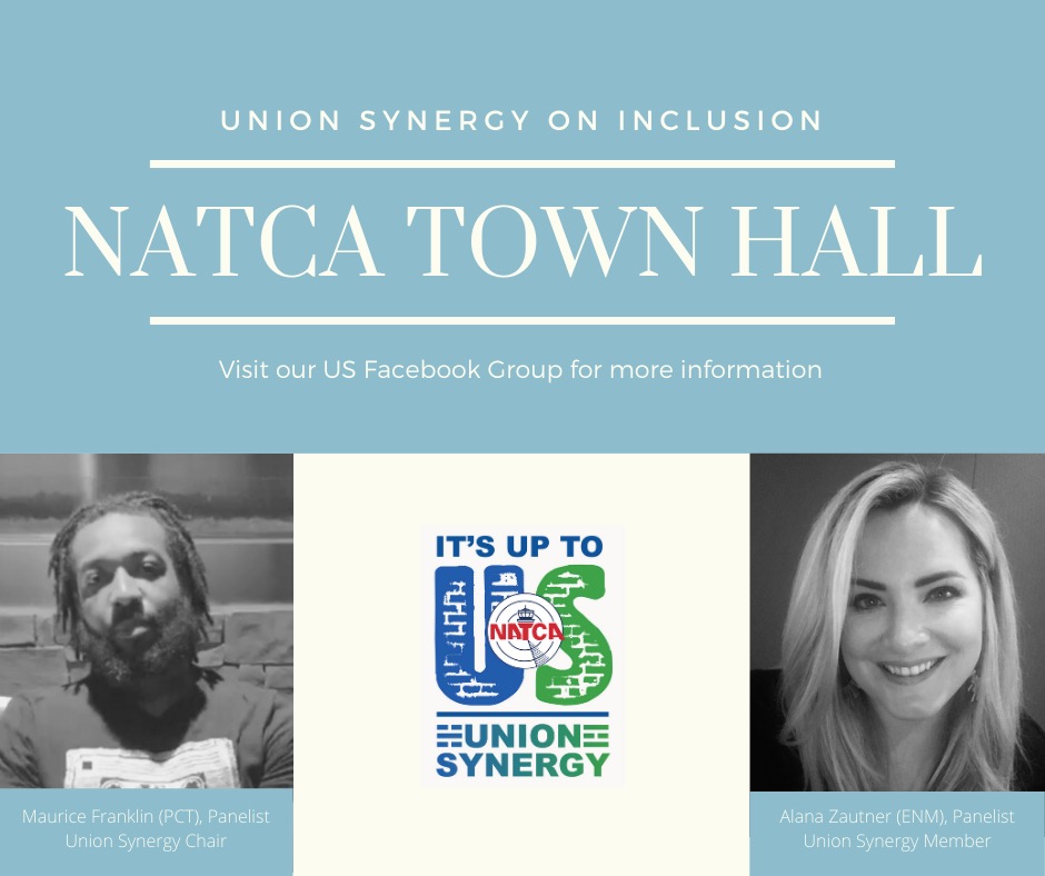 Join the Union Synergy (US) Committee in NATCA's first virtual Town Hall moderated by NATCA Executive Vice President Trish Gilbert. We are ready to bring you difficult conversations and discuss real solutions for the growth of our Union. We will be focusing on inclusion and how it has affected our members and also how it can promote diversity, involvement, and belonging. For more information please fill out the form to receive the zoom link, date, and time.
