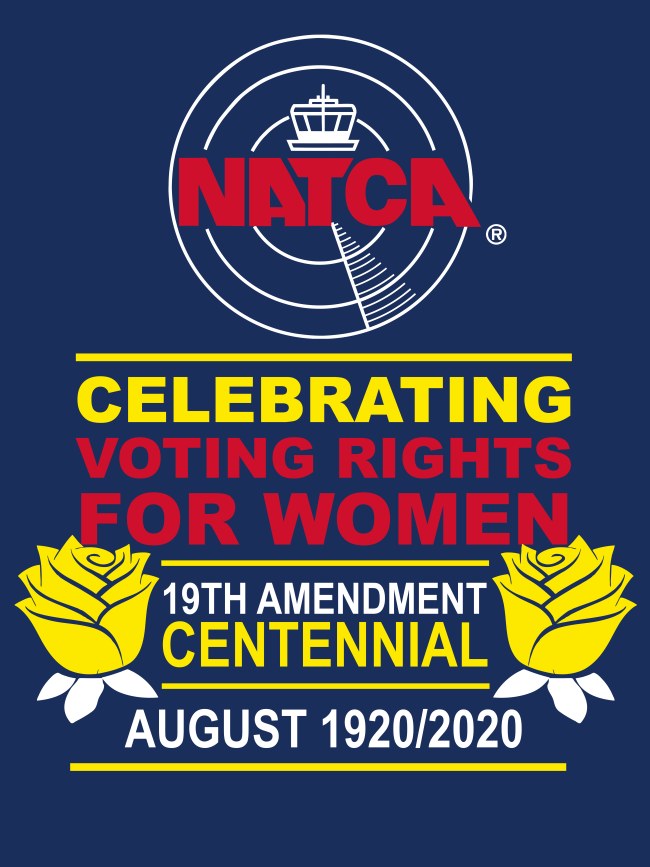 NATCA and the NATCA Charitable Foundation have created a special edition T-shirt to mark this centennial anniversary. The shirt graphic features yellow roses. 100 years ago, supporters of the 19th Amendment wore yellow roses during their campaign to achieve voting rights for women. A portion of the sales of each shirt will benefit the League of Women Voters (LWV).